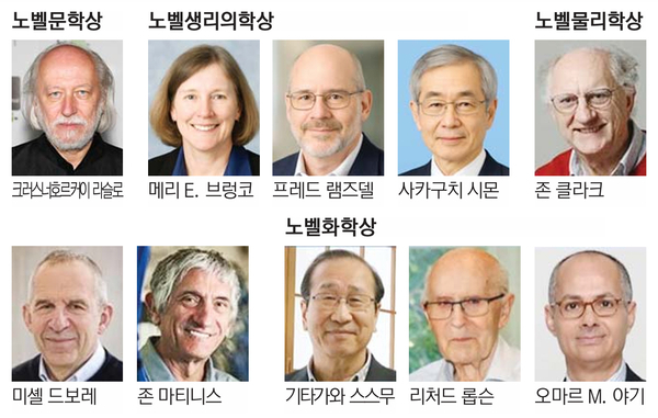 앞서 지난 6일 발표된 노벨 생리의학상은 말초 면역 관용(Peripheral immune tolerance) 관련 발견으로 인체 면역 관련 연구에 기여한 생명과학자 메리 E. 브렁코(64), 프레드 램즈델(65·이상 미국), 사카구치 시몬(74·일본) 3인에게 돌아갔다.