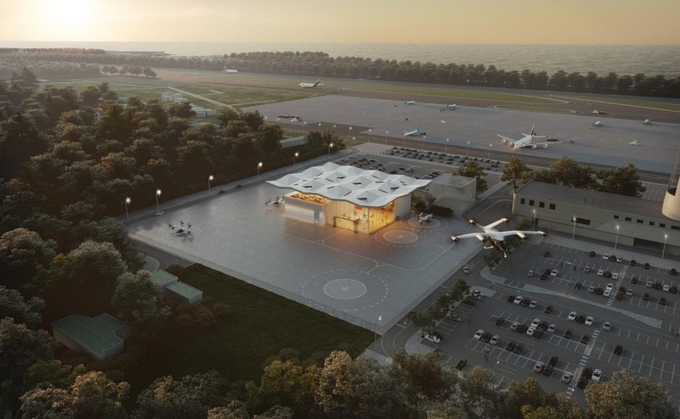 연면적 7900㎡의 버티포트 시설 1층에는 터미널과 주차장(185면), 2층에 이착륙장과 터미널, 격납고, 사무실이 들어선다.