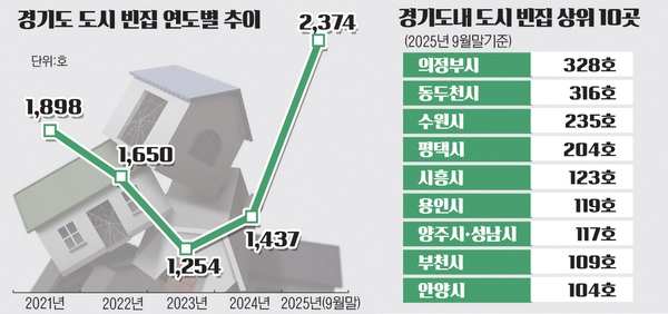 경기지역에 방치된 도심 빈집은 지난 2023년 1천254호에서 2024년 1천437호로 조사됐고 올해는 9월말 기준으로 2천374개로 늘었다.