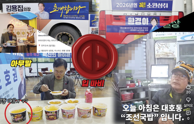 북구청장 출마 예정자인 조호권 전 광주시의회 의장은 MZ 최애 식품 불닭볶음면 먹방을 올려 자신을 어필하고 있다. ‘불닭볶음면 시리즈’라는 제목으로 종류별 불닭볶음면을 먹는 영상을 공유했다. 영상에서는 권위 있는 정치인의 모습은 찾아볼 수 없고, 매운 음식을 먹고 혼이 빠진 털털한 모습이 담겼다.