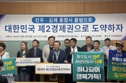 완주·전주 통합 논의를 매듭지을 주민투표 결정 여부가 눈앞에 닥친 가운데, 통합이 무산되거나 일정이 지연될 경우를 대비해 김제·전주와의 통합도 염두에 둬야 한다는 목소리가 김제 지역에서 나왔다. 통합 논의를 완주에만 국한하지 말고 김제까지 확장해 전북의 새로운 거점도시 구상을 선제적으로 마련해야 한다는 것이다. 특히 완주와의 통합이 좌초될 경우 지역사회 혼란이 불가피한 만큼, 차선책으로 김제와의 통합을 논의해 무산 충격의 파장을 최소화해야 한다는 주장이다. 전주김제시민연합은 29일 전북도의회에서 기자회견을 열고 "전주·김제 통합시 출범은 선택이 아닌 생존 전략”이라며 “새만금과 항구, 피지컬AI 산업을 품은 김제와 손잡는다면 전북을 대한민국 제2경제권으로 도약시킬 수 있다”고 강조했다. 이날 기자회견은 이건식 전 김제시장과 조승현 전북대 사회과학대 학장, 최석규 재정공공경제학 교수, 김제 지역 주민 등이 참석했다. 이들은 “새만금과 항구, 피지컬AI 산업을 품은 김제와 전주가 손잡는다면 전북을 대한민국 제2경제권으로 도약시킬 수 있다”며 통합시 청사 김제 이전, 백산지구 고속철도역 신설, 중앙 공공기관 유치, 피지컬AI 산업단지 조성 등 7대 상생안을 제시했