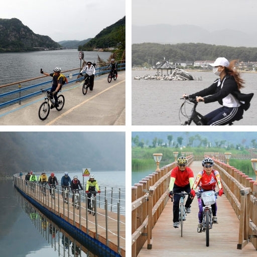 ■양구 `서천 파로호변 자전거길'=양구 서천변과 파로호변을 따라 조성돼 있는 자전거길은 12㎞ 구간의 순환형 코스다. 산과 호수가 어우러진 아름다운 자연 속에 양구군이 만들어놓은 한반도섬, 꽃섬, 청춘공원, 조각공원 등이 조화를 이루면서 4계절 수려한 경관을 뽐낸다. 맑은 공기를 온몸으로 느끼면서 그림과 같은 절경 속으로 빠져들어가듯 달리다 보면 어느새 힐링의 순간이 찾아온다. 그래서 이 길의 이름이 `10년 장생길'이다. 이 길에서 몸과 마음이 힐링되고 행복감을 맛볼 수 있으니 10년 더 산다는 것이다.