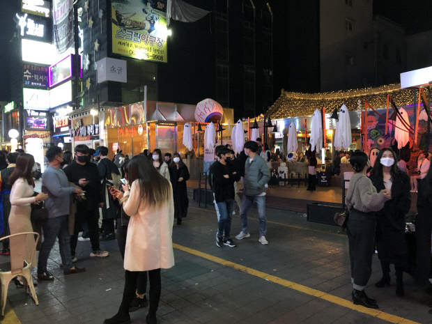 음식 배달 오토바이만 오갈 뿐 사회적 거리두기가 무색할 정도로 따닥따닥 붙어있던 헌팅포차 앞 대기행렬도, 술을 먹고 귀가하려는 손님을 태우려고 줄 서 있던 택시들도 모습을 감췄다.