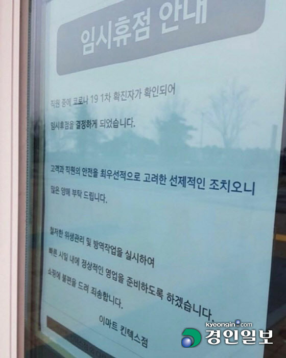 이마트 일산점은 이날 "근무하는 직원이 양성반응자로 확임됨에 따라 선제적 예방조치 차원에서 이마트타운 킨텍스점을 임시 휴점한다"고 밝혔다.