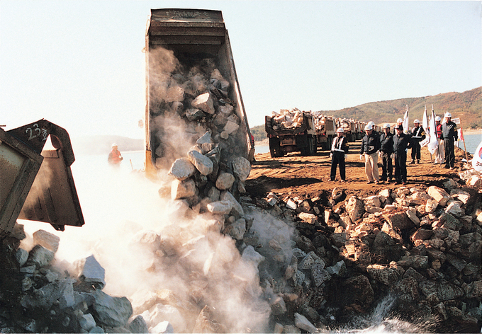 인천공항 건설을 위해 메워야 하는 바다는 만조 시 평균 수심이 1~2m로 얕았다. 그 규모는 여의도 면적의 13배에 해당한다. 이 너른 바다를 메우기 위해 영종도와 용유도 사이에 총 길이 17.3㎞의 방조제를 쌓았다.