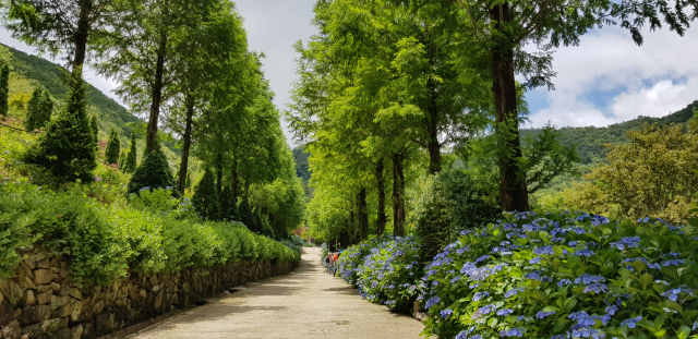 도내 6번째 민간정원으로 등록한 그레이스정원은 고성군 상리면에 위치하고 있으며 15년 동안 에메랄드골드, 수국 등 120종의 식물을 가꿨다.