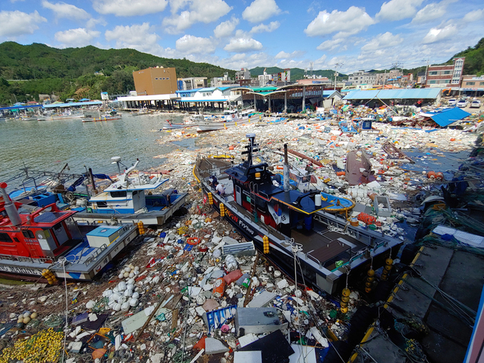 원덕읍 임원항 일원에서는 이날 새벽 바닷물 수위가 가장 높은 대조기 일명 백중사리에 강풍이 겹치면서 높아진 파도가 방파제를 넘어 수십m 높이로 치솟으며 정박중인 어선들을 덮쳐 20~30척이 침수, 전복됐다.