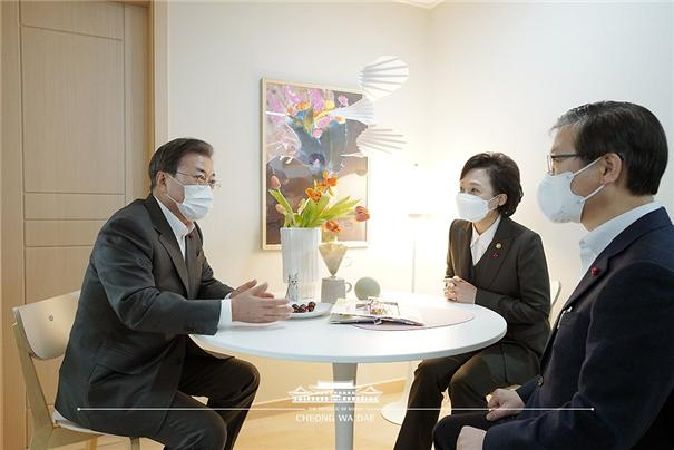 28일 한국토지주택공사(LH)가 국회 국토교통위원회 소속 김상훈 국민의힘 의원(대구 서구)에게 제출한 '화성동탄 공공임대 현황'에 따르면, 지난해 12월 문 대통령과 두 국토부 장관이 다녀간 화성동탄 A4-1블록 공공임대 ▷2○○동 1○○호(44A형)와 ▷2○○동 1○○호(41A-1형)이 지난 24일 기준으로 여전히 미임대 상태인 것으로 확인됐다.