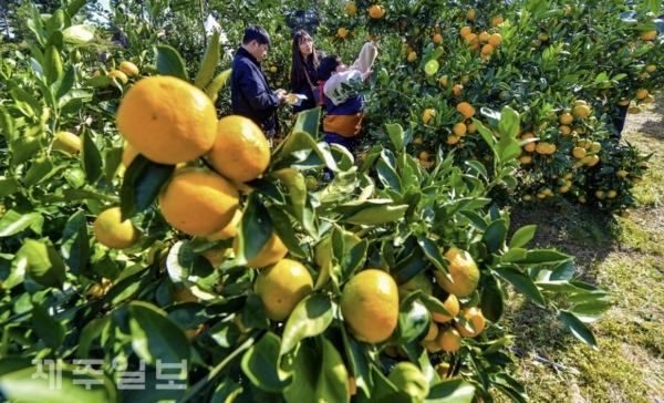 제주도 농업기술원 조사에 따르면 열과율은 지난해 23.3%에서 올해 8.6%로 14.7%p(포인트) 줄었다. 다만 여름철 고온 영향으로 일소 피해가 증가했고, 10월 고온과 잦은 강우로 총채벌레·깍지벌레 등 해충 발생은 다소 늘었다.