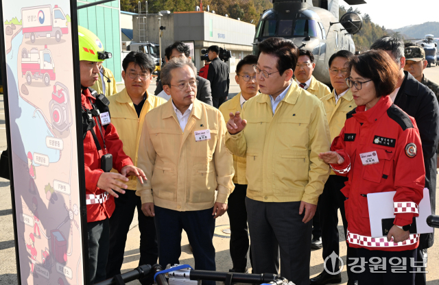이재명 대통령이 가을철 산불 위험 지역인 강원특별자치도를 찾아 "지나친 것이 부족한 것보다 100배 낫다"며 철저한 산불 진압 대응 체계 구축을 다시 한번 주문했다. 현장의 1차 산불 진압에 대한 책임 소재도 명확히 하라고 지시했다.