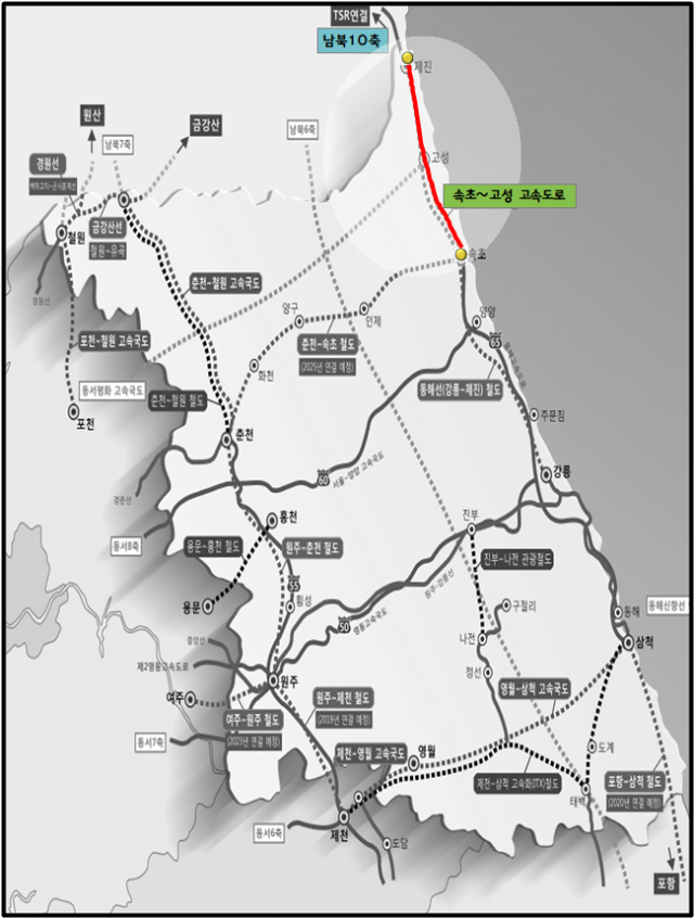 속초~고성 고속도로 이미 1998년 기본설계를 마쳤다. 당시 비용 대비 편익(B/C)이 0.6으로 비교적 높은 편이었음에도 진척이 없었다.