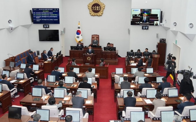 제주도의회(의장 이상봉)는 10일 444회 2차 정례회 본회의를 열고, 제주도가 제출한 내년도 예산안 7조7875억원을 수정 의결했다. 올해 7조5783억원보다 2.76%(2092억원) 증액됐다.