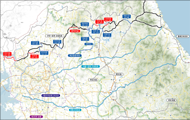 국도 56호선이 주목받는 이유는 인천~경기~강원 접경지를 동서로 관통하는 초광역권 도로(310~350㎞)의 단절 구간 중 하나이기 때문이다.