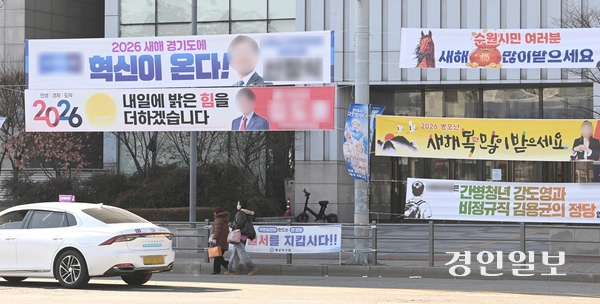 2026년 6·3 지방선거를 앞둔 새해를 맞아 도심에 정치 현수막이 난립하고 있다. 행정안전부가 정한 설치 기준마저 위반한 현수막도 발견되면서 정치 문화가 개선돼야 한다는 지적이 나온다.