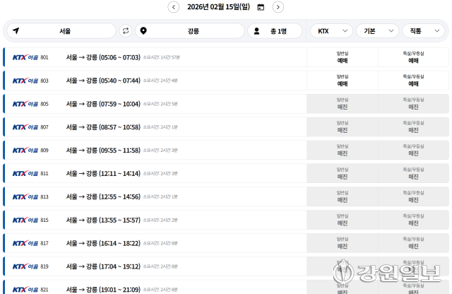다가오는 설 연휴를 앞두고 ‘승차권 예매 대란’이 또다시 시작됐다. 명절을 맞아 강원지역으로 향하려는 이들의 손가락이 분주하게 움직이는 모습이다.