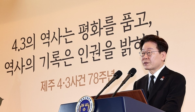 이 대통령은 이날 김혜경 여사와 함께 참석한 제주 4·3 희생자 유족과의 오찬에서 "대한민국에서 국가 폭력으로 국민이 희생되는 일이 없도록 하겠다"며 "그런 일이 생기면 나치 전범을 처벌하는 것과 같이 영구적으로 책임지도록 반드시 만들어 놓겠다"고 밝혔다.
