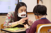 27일 오전 8시 30분쯤 청각장애 특수학교인 '영화학교'. 올해 첫 등교 수업을 위해 스쿨버스에서 내린 학생들은 선생님의 얼굴을 보고 함박웃음을 지었다. 영화학교 선생님들이 5개월 만에 만나는 아이들과의 원활한 수업을 위해 입 모양과 표정이 훤히 드러나는 '투명 마스크'를 착용하기 있었기 때문이었다. 코로나19 여파 속 등교 수업이 본격 시작되면서 청각장애 학생들의 학습권을 보장할 수 있는 마스크가 등장해 눈길을 끌고 있다. KF94 마스크의 가운데가 투명하게 처리된 일명 '립뷰(lip-view) 마스크'다. 입술이 보이는 마스크 덕에 수업 차질에 대한 우려는 기우에 그칠 수 있었다. 다채로운 선생님의 표정에 의미 전달은 명확했고, 학생들은 교사와 편하게 대화를 주고받으며 수업에 집중할 수 있었다. 사회 과목을 담당하는 손정호 선생님은 "수업 전 복도에서 일반 마스크를 쓰고 한 학생과 잠시 대화를 했는데 학생이 잘 알아듣지 못해 계속 되묻더라"며 "투명 마스크 착용 후에는 그런 일이 없어 편하게 수업을 진행할 수 있었다"고 했다. '립뷰 마스크'라는 획기적 선물은 대전청각장애인생애지원센터의 손에서 나왔다. 지난 15일 이곳은 '립뷰 마스크'를 제작·생산했다