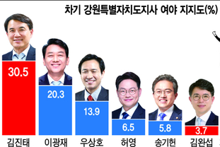 (강원일보) 김진태 지사 오차범위 밖 앞서…이광재-우상호 추격 양상